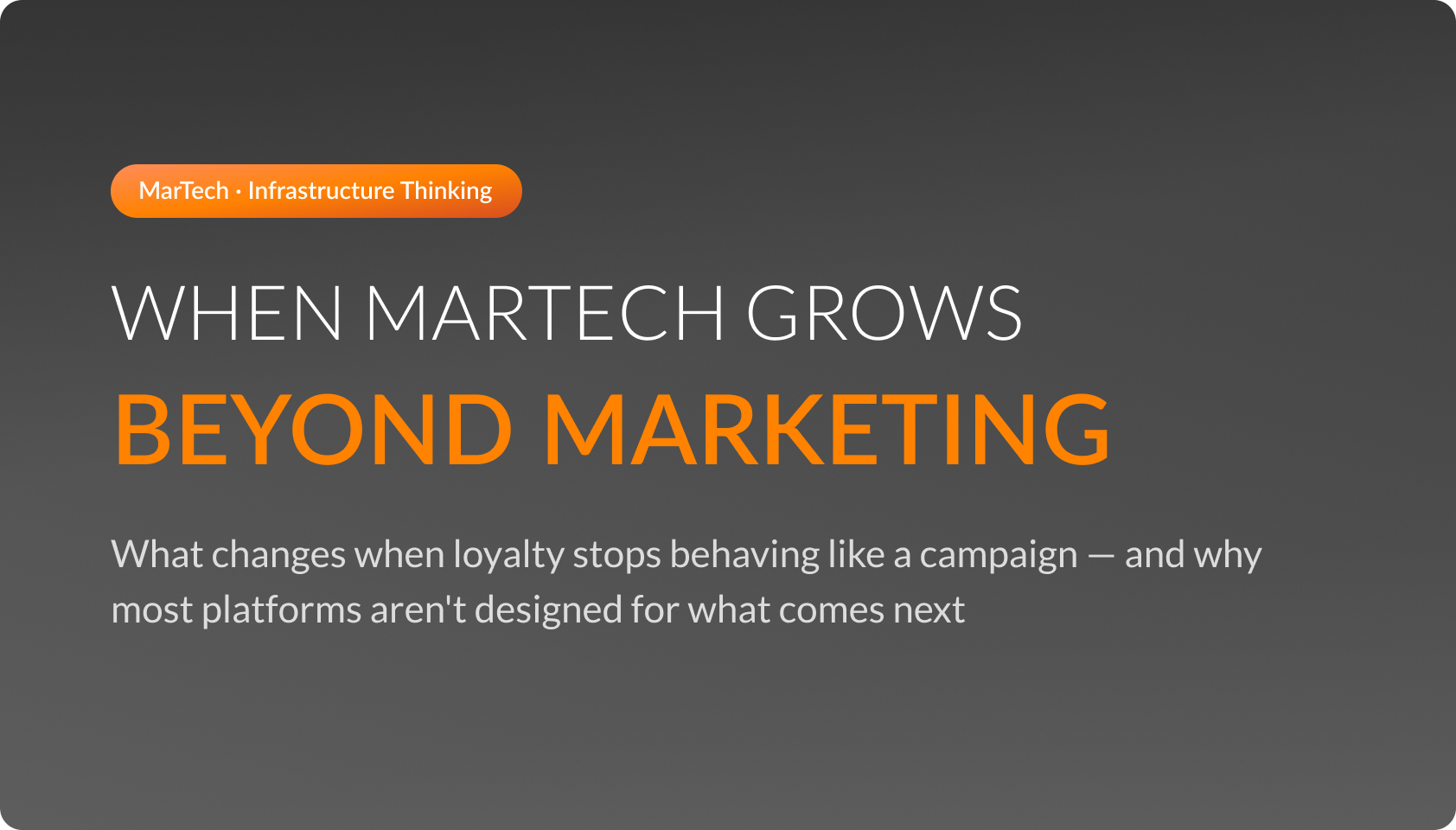 For most organizations, loyalty begins as a marketing initiative — evaluated through marketing RFPs, measured by engagement and redemption, and celebrated for its customer-facing impact. That framing makes sense early on. The problem is that loyalty does not behave like a marketing program once it enters the real world. After more than a decade integrating loyalty into complex enterprise environments, one pattern emerges consistently: loyalty fails not because teams lack creativity, but because it is designed as a campaign and expected to operate as infrastructure. And infrastructure has very different rules.